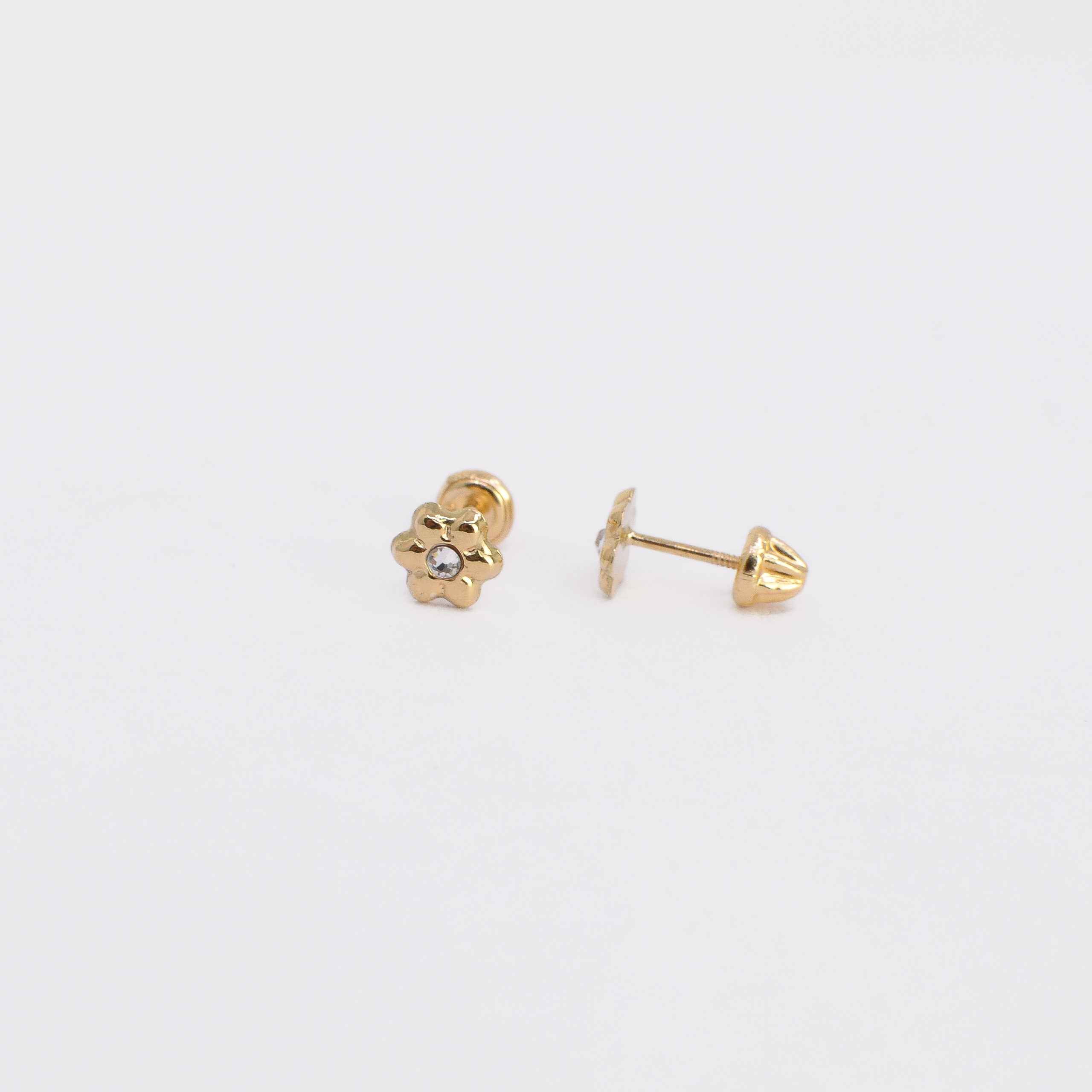Topo Flor Oro 18k con rosca de seguridad 100% hecho a mano por orfebres Colombianos.